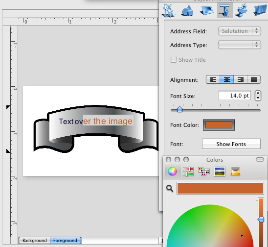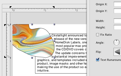 You can add text colors and styles to the text in oval objects also. Text in rectangular objects can be set to wrap around objects that are higher in "staking" order on your label. Use Object>Text Runaround check box from the Object Properties tab of the Object Information panel.