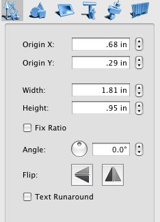 Object properties tab contains the settings that descrive the prosition and dimensions of the object, whether it preserves its ration when resized, controls object angle, filpping. It reflects also if the object is wrapped by the text of the underlying objects (Text Runaround).