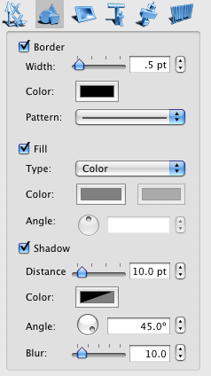 Graphic properties control the appearance of the object. The border section allows changing the border width, color and pattern, the Fill section changes fill color, gradient color, type and angle.