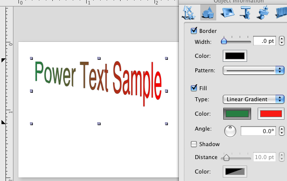 switching to the Graphics tab of the Object Information panel allow you to set the power text all the attributes, usually applied to the object box.