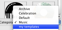 | Home Disc Labels makes it easy for a user to save the current label design as a template, for using in future. You can do this by selecting the File>Save as Template menu option. Your template then can be found in My Templates category of the Design panel on the left of the window.