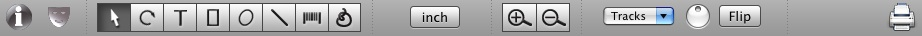 Measurement button changes the measurement units. The Import Tracks, Text Angle, and Text Direction controls appears when the object which can contain text (rectanle or oval) is selected on your label. The Object tool is used to activate, resize
