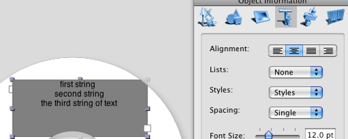 switching to the Graphics tab of the Object Information panel allow you to set the power text all the attributes, usually applied to the object box.