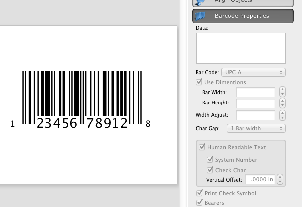To change the barcode symbology on your card, select the Barcode Info tab in the Object Information Panel, and use the Barcode popup menu. Enter the desired data to the Barcode data field.