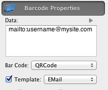 URL, EMail, SMS, and other Templates popup menu options set correspondent template to the Barcode data.
