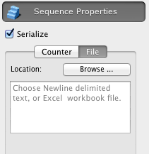 Use the File tab of the Sequential Properties section of the Object Information Panel for setting a text file as a source of the sequential barcode data for a selected barcode object.