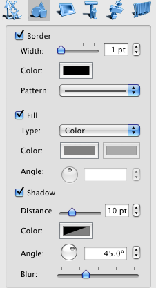 Graphic properties control the appearance of the object. The border section allows changing the border width, color and pattern, the Fill section changes fill color, gradient color, type and angle.