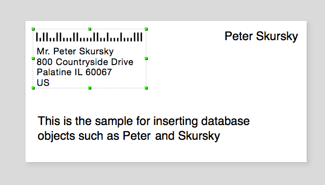 The Labels and Databases allows to add the information from a database to a label in a number of ways. It can be added as a separate database field, address, or barcode object. Also, the database field objects can be inserted into text.