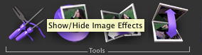 To apply the effects, use the Image Effects palete. Display it using the View>Image Effects menu option, or by clicking on the correspondent tool button. |